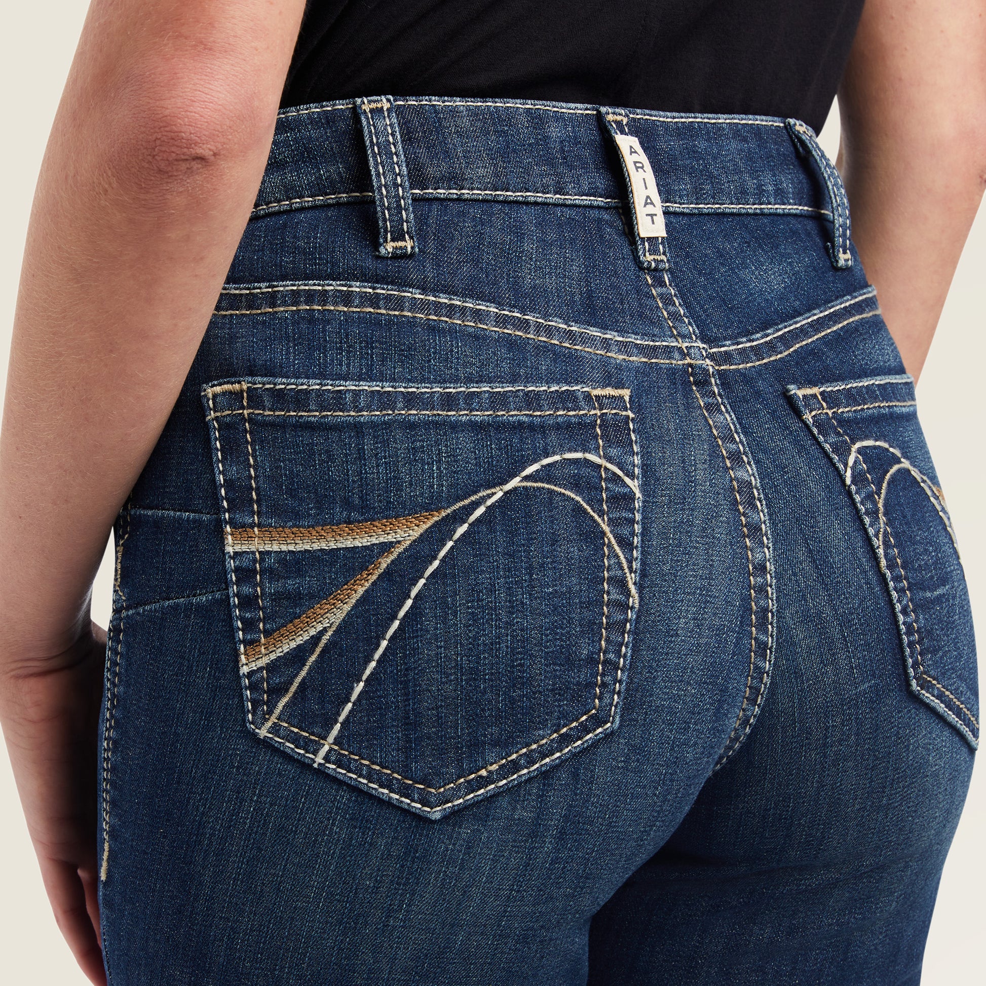 The Ariat® Women's R.E.A.L. High Rise Dorothy Boot Cut Jean 10042222 combines style and comfort for a flattering fit. The high rise and slim through hip and thigh design creates a sleek silhouette, while the waistband and seat provide a perfect fit that won't gap or sag. Made with a mix of quality cotton, polyester, and spandex materials for superior stretch and durability.