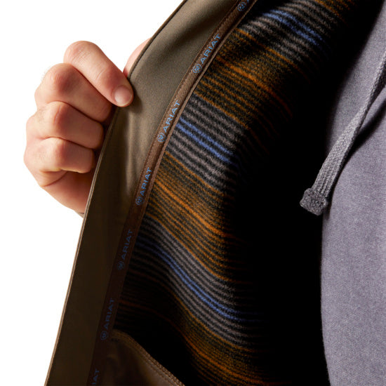 Stand-Up Collar: The stand-up collar, adorned with the Ariat logo, not only enhances the jacket's aesthetics but also provides added warmth and protection against the elements.