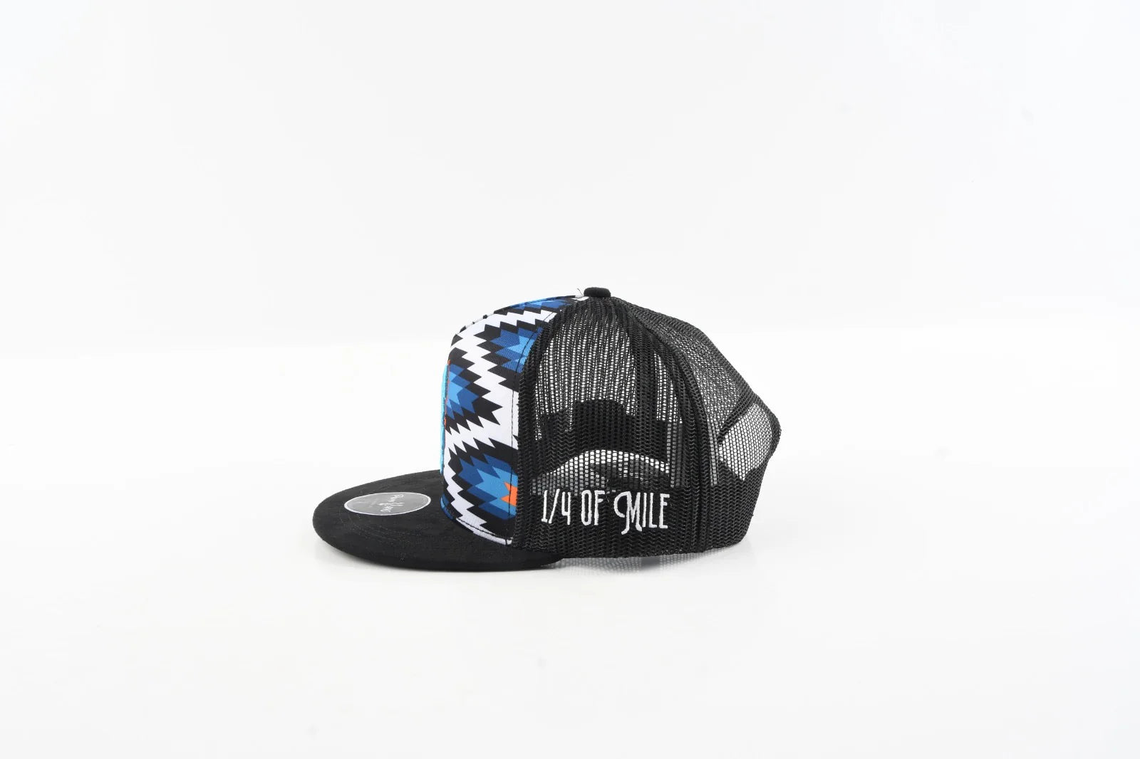 Make a bold statement with the Aztec Thunder – Puro 440 Quarter Mile Snapback, a hat that fuses tradition, horsepower, and modern streetwear. Its striking blue, black, and white Aztec-inspired pattern across the crown pays homage to heritage and culture, while embodying the fast-life spirit of the Puro 440 brand.