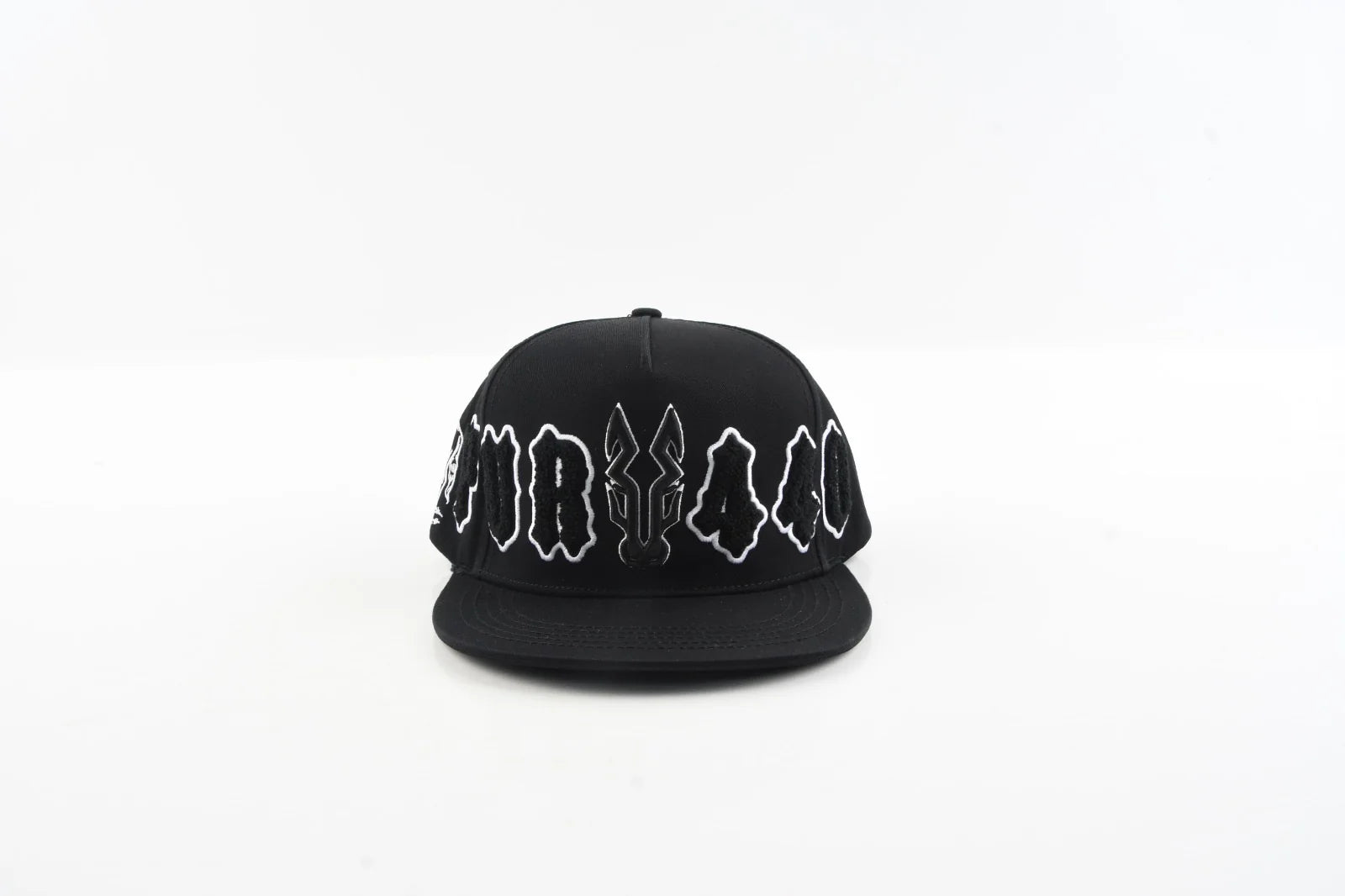 Front Design: Raised chenille embroidery spelling “PURO 440” in bold gothic style, outlined in white for a striking contrast. At the center rests the signature Puro 440 horsehead logo, symbolizing power and identity.