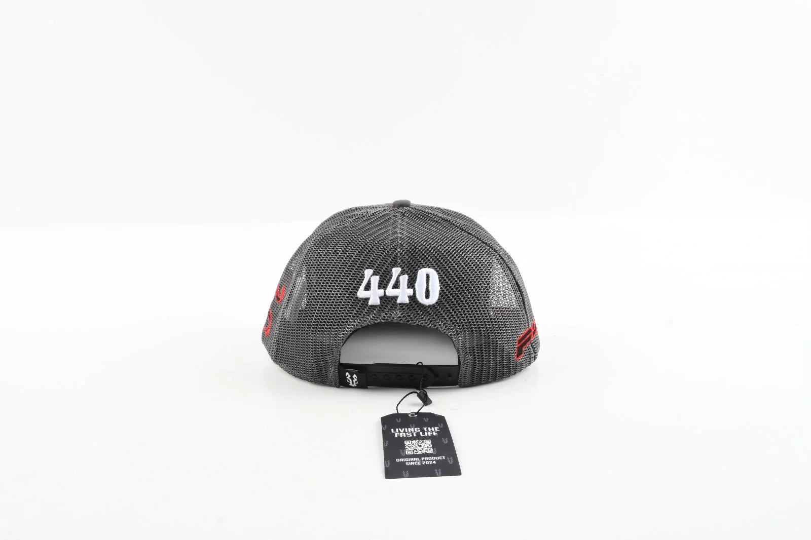 Step into the fast lane with the Orbit Flame – Puro 440 Edition, a sleek gray-and-black trucker hat built for speed, power, and lifestyle.