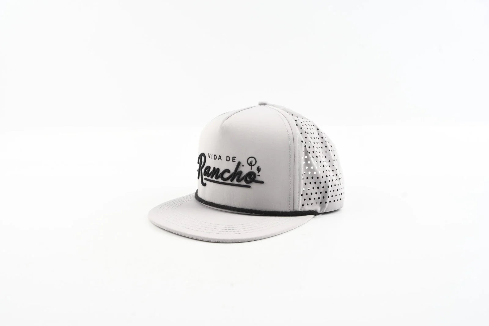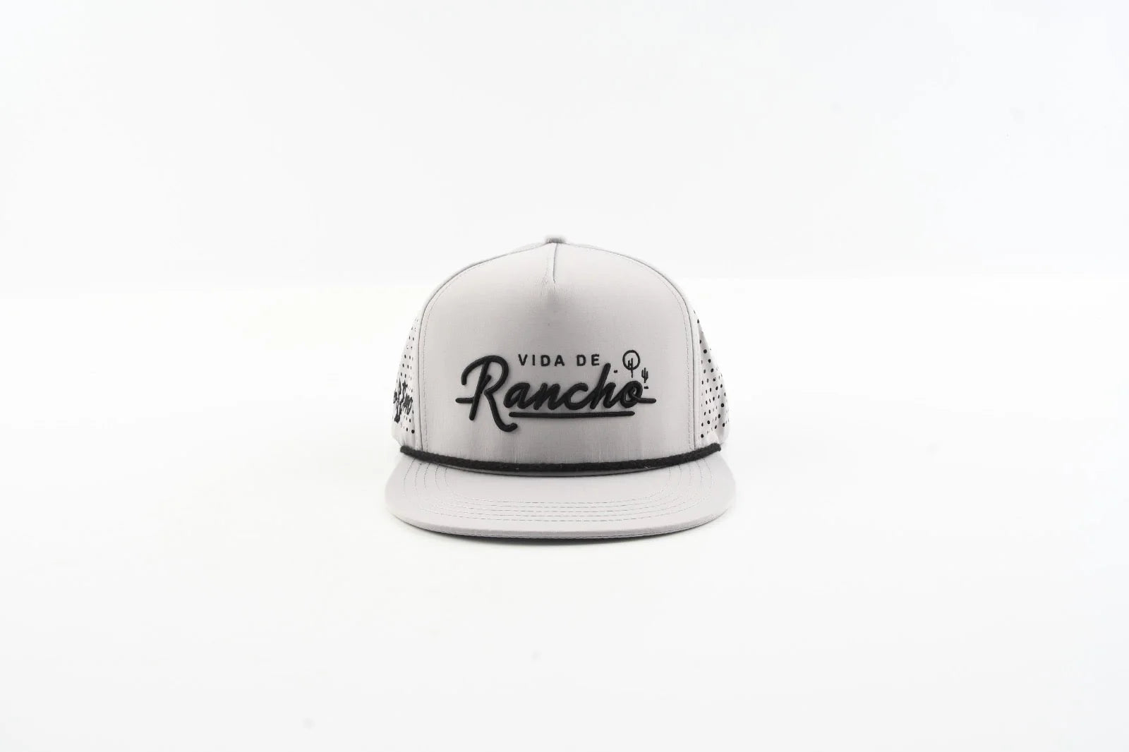 Front Design: Bold embroidered “Vida de Rancho” script across the structured crown, accented with cactus and lasso details that celebrate Western roots.