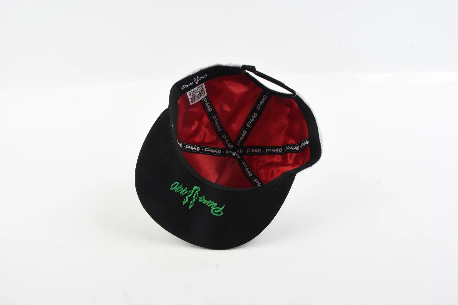 Celebrate heritage and pride with the Viva México Limited Edition cap from Puro 440. Featuring a bold white crown, black brim, and red satin interior, this hat is stitched with details that honor Mexican culture. The front showcases the Puro 440 logo in the colors of the Mexican flag, while the sides feature embroidered Aztec-inspired star patterns and a full map of México with intricate cultural designs.