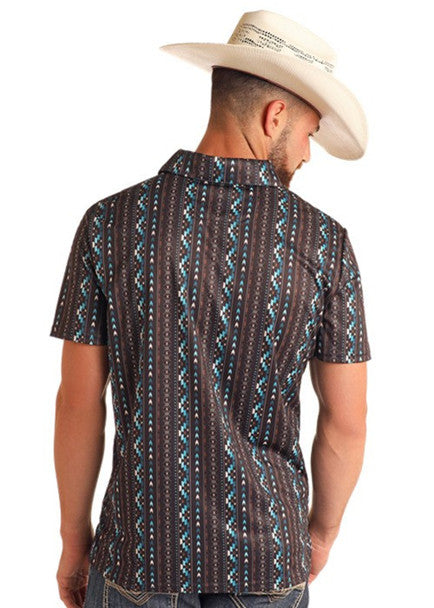 ROCK & ROLL Men's DARK BROWN AZTEC PRINT - MENS POLO - BM51T06006