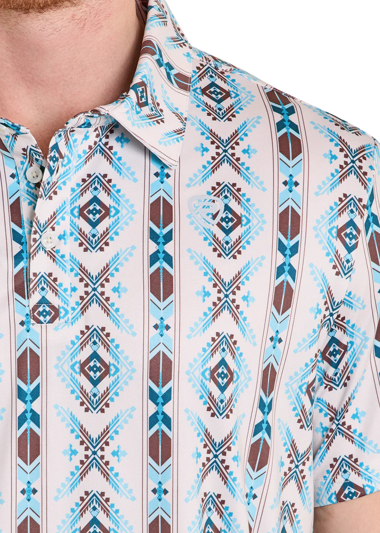 Rock & Roll Men's Denim Polo Light Southwestern Aztec Print BM51T08339