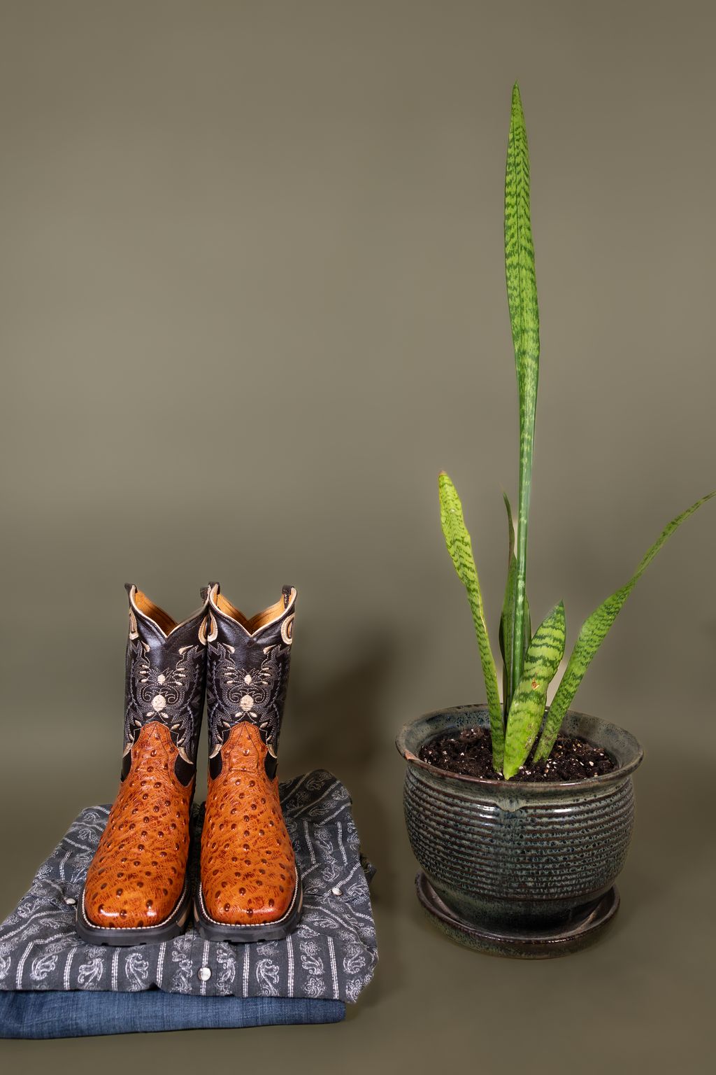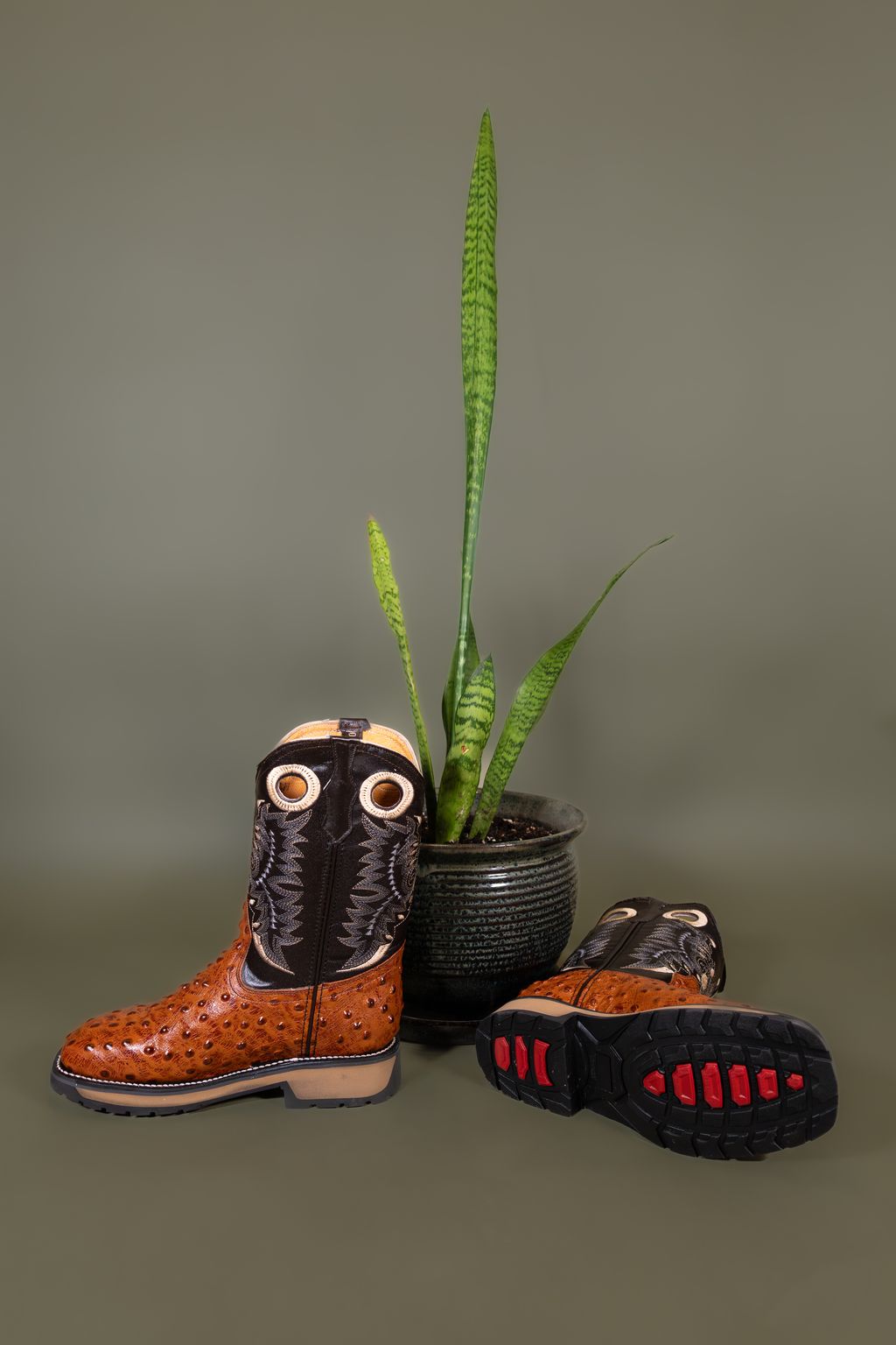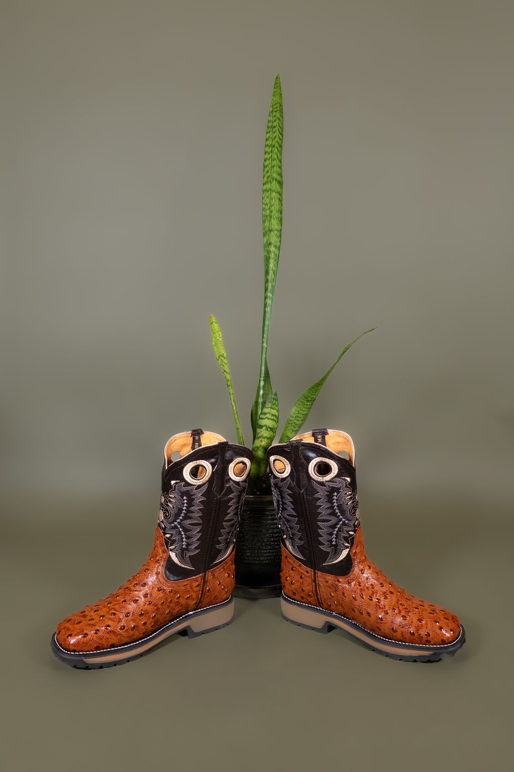 Step into superior comfort and durability with the Rouswest Men's Ostrich Print Brandy Work Boots. These handcrafted boots combine authentic Western style with cutting-edge work boot technology, making them perfect for the hardworking professional who demands both performance and style.